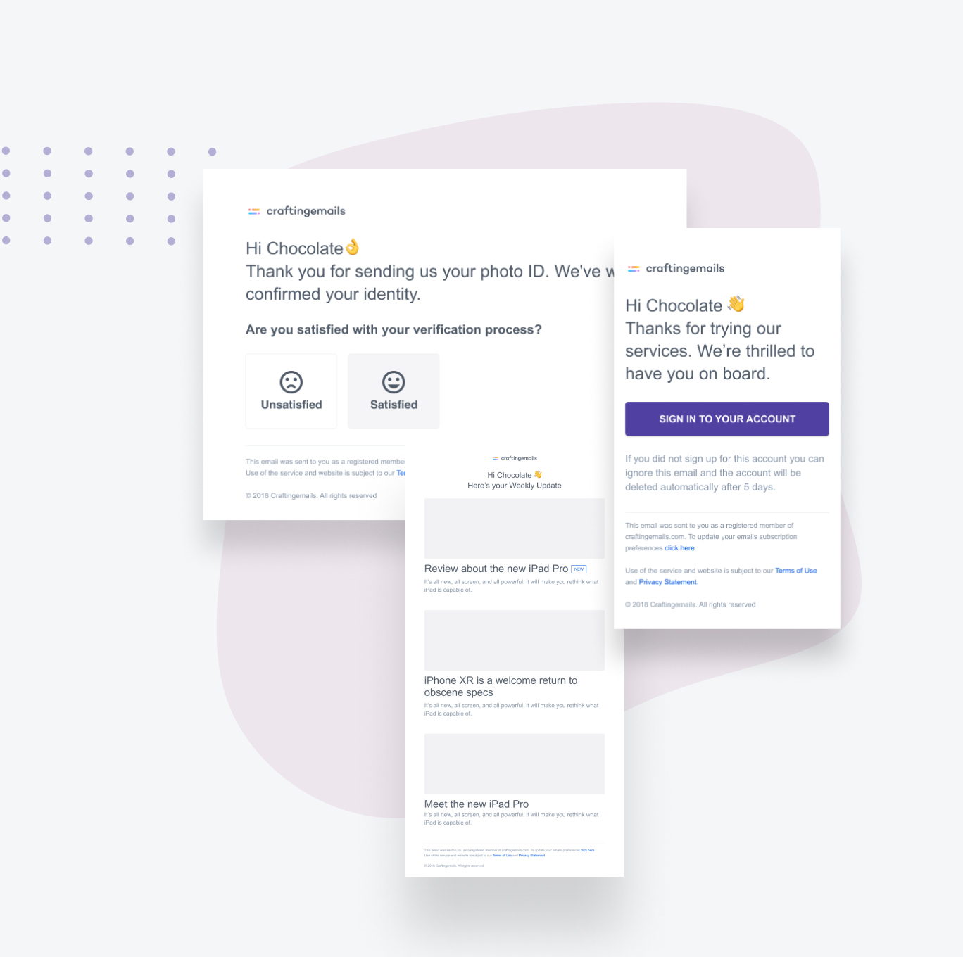 Be at the right time at the right place. Emails, Push Notifications and other reach outs are sent out when a user is highly likely to interact with it. These are smartly determined by our AI based on previous user interactions.